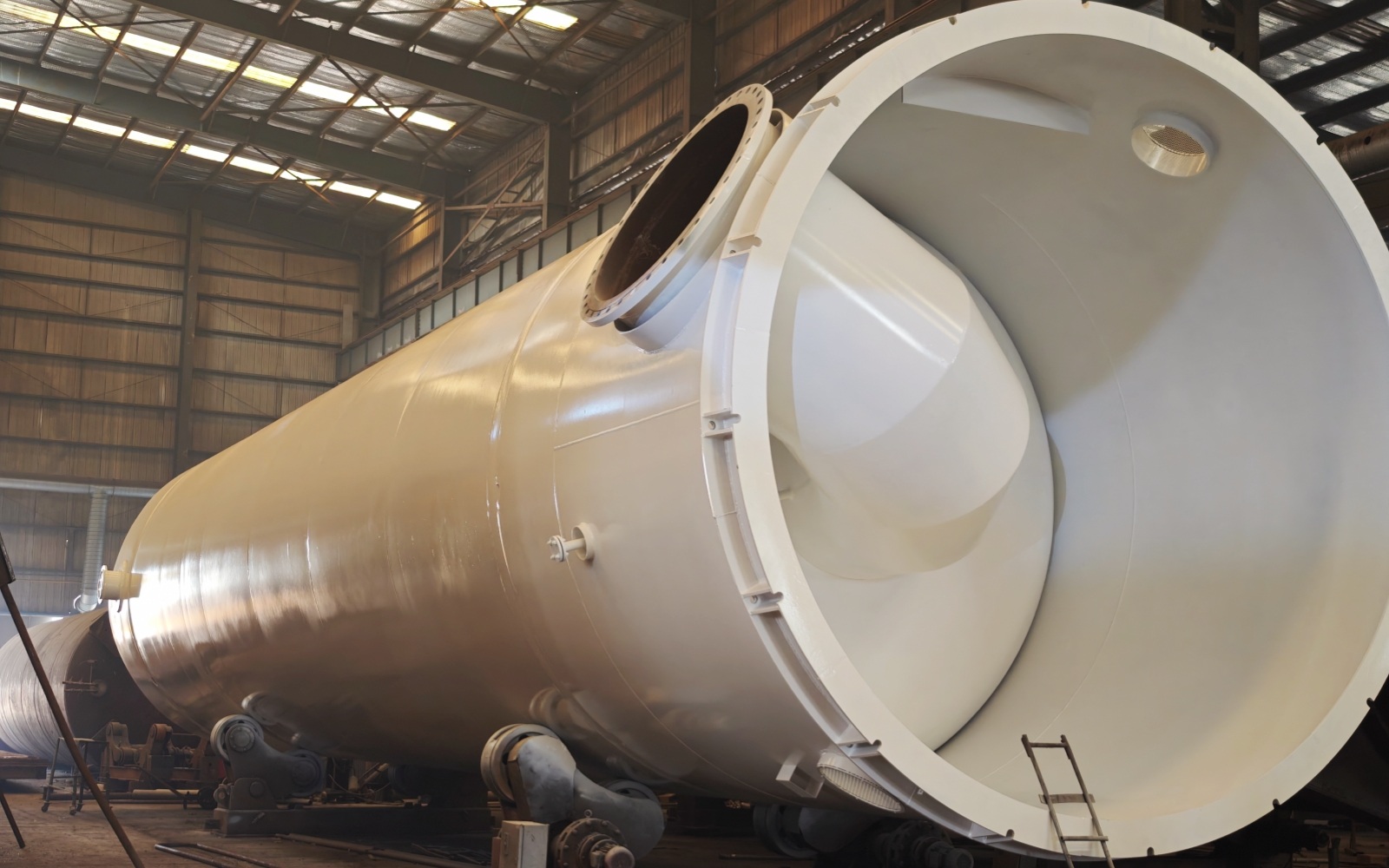 設(shè)備制造完成后進(jìn)行強(qiáng)度試驗(yàn)與嚴(yán)密性試驗(yàn),確保殼體與接管密封性能滿足設(shè)計(jì)要求。內(nèi)部除沫組件與導(dǎo)流結(jié)構(gòu)在出廠前固定加固,防止運(yùn)輸振動(dòng)導(dǎo)致松動(dòng)。所有開口采用盲板或封堵件密封,防止灰塵、水分及異物進(jìn)入。外表面按項(xiàng)目防腐等級(jí)完成涂裝或重防腐體系施工,并采取防雨、防碰撞保護(hù)措施。運(yùn)輸過程中使用專用支撐與綁扎結(jié)構(gòu)固定,避免筒體受力變形或封頭局部受壓。到貨后應(yīng)進(jìn)行外觀檢查、附件清點(diǎn)、銘牌核對(duì)及防腐層復(fù)檢,確認(rèn)無運(yùn)輸損傷后方可進(jìn)行安裝。